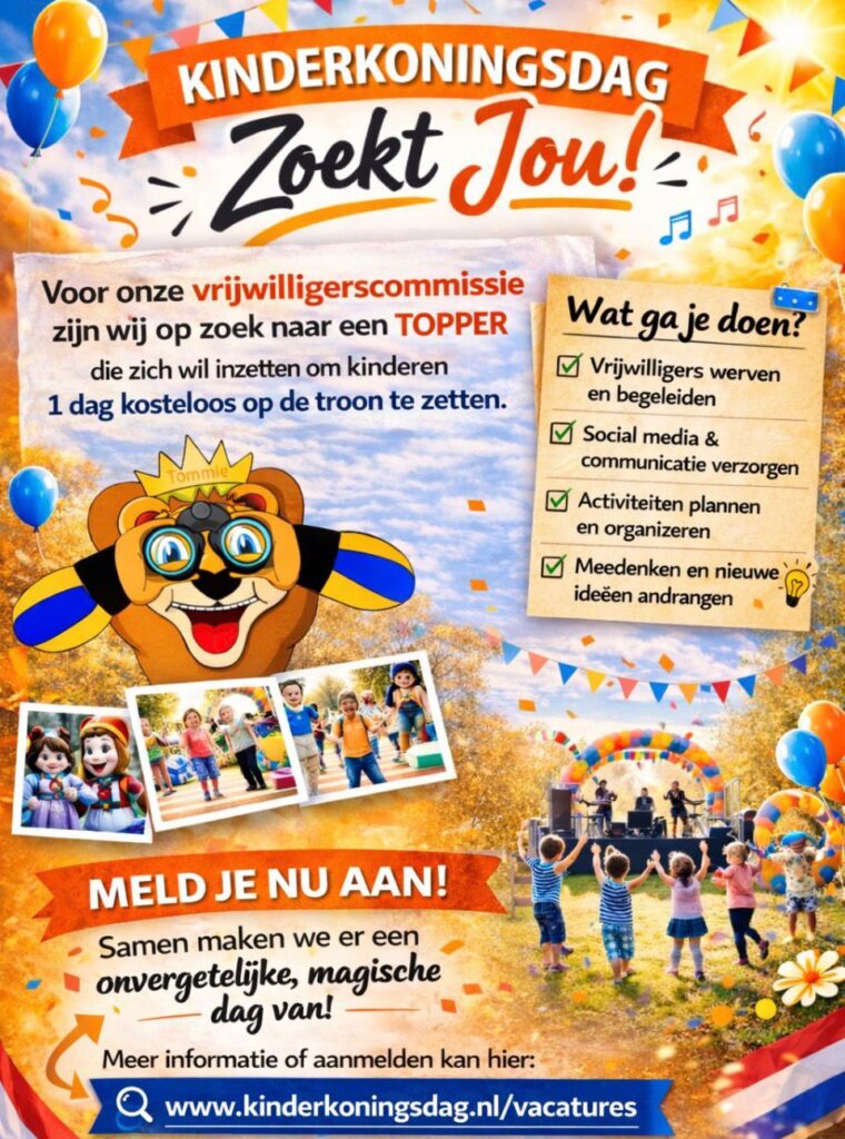 👉 Bekijk alle informatie over de vacatures via: www.kinderkoningsdag.nl/vacatures/