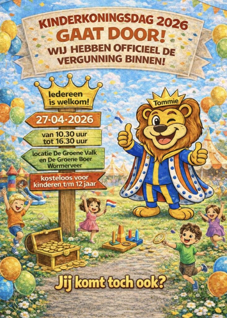 Met trots kunnen wij bekendmaken dat de vergunning officieel binnen is en dat KinderKoningsdag 2026 definitief doorgaat!
